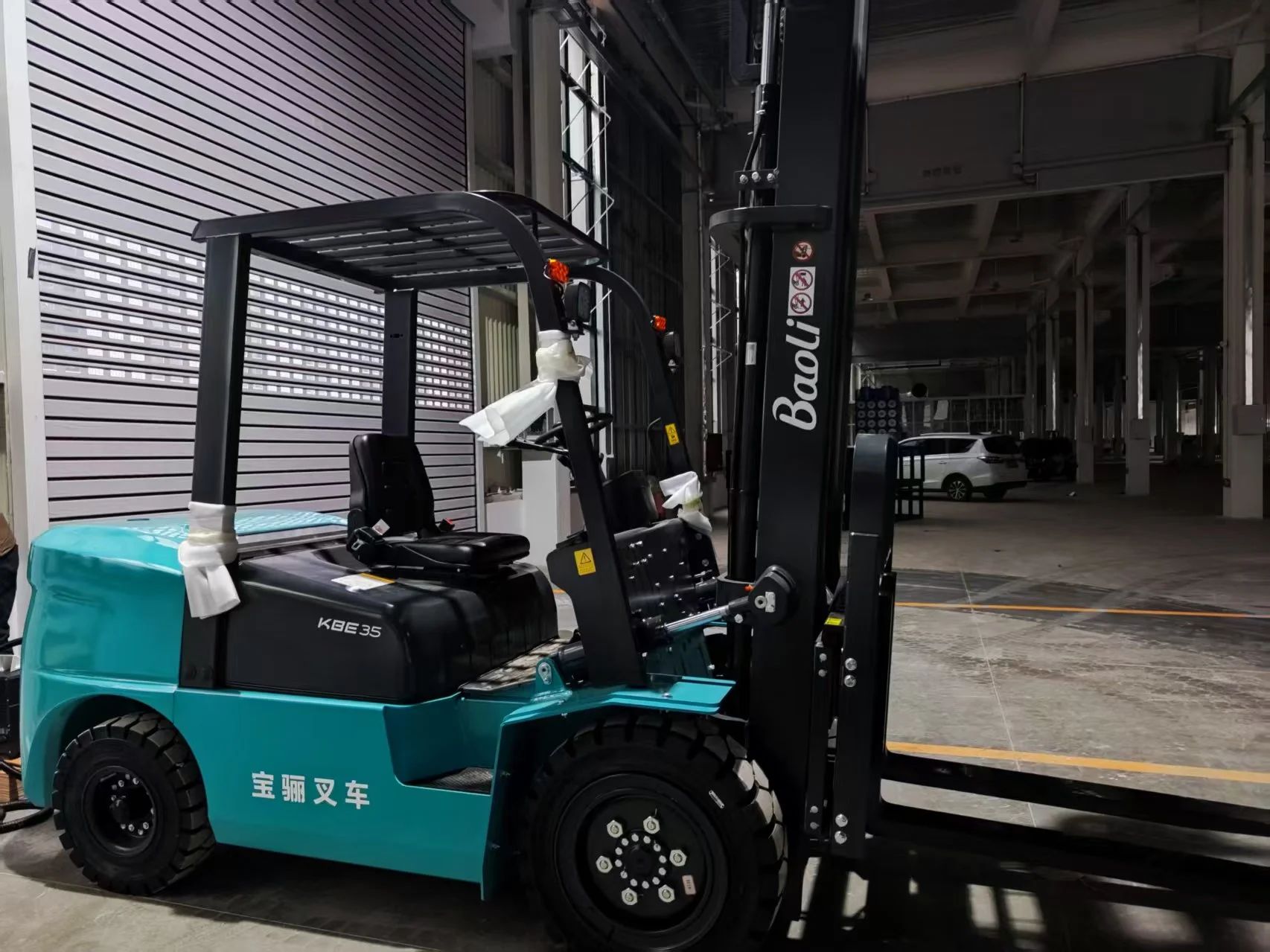 然而仓库业务量多且搬运流程复杂,换错叉车易造成物流爆仓、生产爆单等隐患。如何在迭代搬运模式的同时,对工厂和仓库物流搬运作业无任何影响?最终,客户决定借助电车专家宝骊的强悍实力,以宝骊X1B电动平衡重叉车,开启“智造+绿造”的生产新格局。